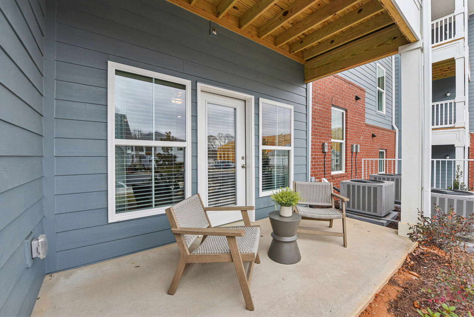 resort-style outdoor amenities including pickleball and cornhole courts,